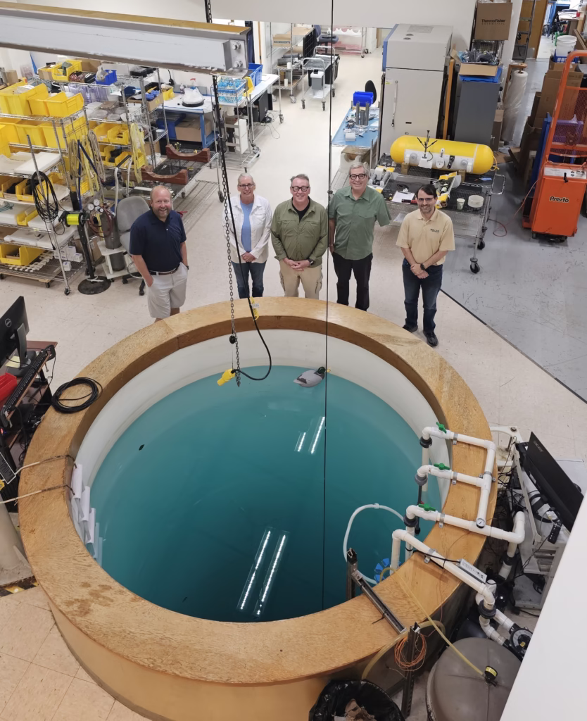 During August of 2025, Denise and David Holland attended an intensive training at McLane Labs to learn how to program, deploy, and recover the robot. The tests were successfully conducted in a 15-meter vertical test tank.